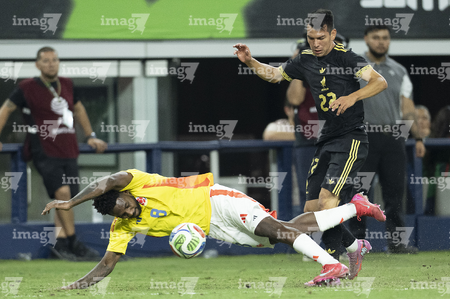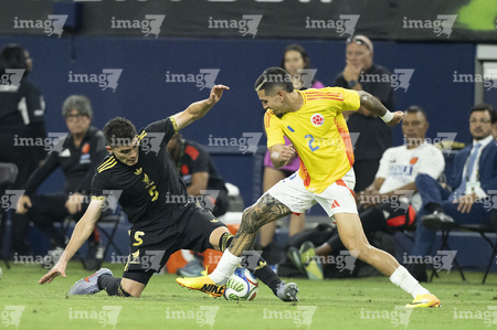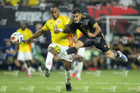 Arlington, Texas, Estados Unidos, 11 de octubre de 2025. Willer Ditta y Germán Berterame, durante un partido amistoso del MEXTOUR 2025, entre la Selección Nacional de México y la Selección de Colombia, celebrado en el AT&T Stadium. Foto: Imago7/ Etzel Espinosa