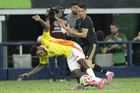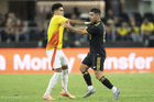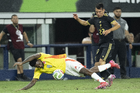 Arlington, Texas, Estados Unidos, 11 de octubre de 2025. Luis Díaz y Erik Lira en conato de bronca, durante un partido amistoso del MEXTOUR 2025, entre la Selección Nacional de México y la Selección de Colombia, celebrado en el AT&T Stadium. Foto: Imago7/ Etzel Espinosa