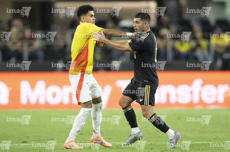 Arlington, Texas, Estados Unidos, 11 de octubre de 2025. Jorge Sánchez y Luis Díaz, durante un partido amistoso del MEXTOUR 2025, entre la Selección Nacional de México y la Selección de Colombia, celebrado en el AT&T Stadium. Foto: Imago7/ Etzel Espinosa