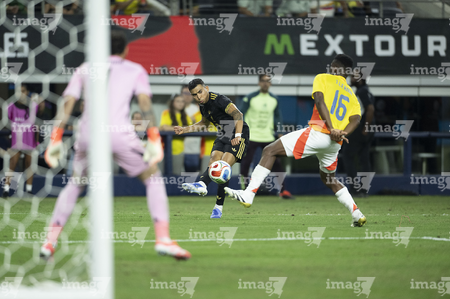Arlington, Texas, Estados Unidos, 11 de octubre de 2025. Jefferson Lerma anota gol, durante un partido amistoso del MEXTOUR 2025, entre la Selección Nacional de México y la Selección de Colombia, celebrado en el AT&T Stadium. Foto: Imago7/ Etzel Espinosa