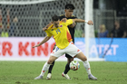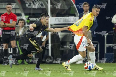 Arlington, Texas, Estados Unidos, 11 de octubre de 2025. Erik Lira y James Rodríguez, durante un partido amistoso del MEXTOUR 2025, entre la Selección Nacional de México y la Selección de Colombia, celebrado en el AT&T Stadium. Foto: Imago7/ Etzel Espinosa