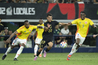 Arlington, Texas, Estados Unidos, 11 de octubre de 2025. Álvaro Angulo y James Rodríguez en festejo, durante un partido amistoso del MEXTOUR 2025, entre la Selección Nacional de México y la Selección de Colombia, celebrado en el AT&T Stadium. Foto: Imago7/ Etzel Espinosa