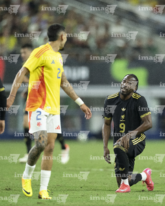 Arlington, Texas, Estados Unidos, 11 de octubre de 2025. Julián Quiñones en lamento, durante un partido amistoso del MEXTOUR 2025, entre la Selección Nacional de México y la Selección de Colombia, celebrado en el AT&T Stadium. Foto: Imago7/ Etzel Espinosa