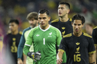 Arlington, Texas, Estados Unidos, 11 de octubre de 2025. Ángel Malagón en lamento, durante un partido amistoso del MEXTOUR 2025, entre la Selección Nacional de México y la Selección de Colombia, celebrado en el AT&T Stadium. Foto: Imago7/ Etzel Espinosa