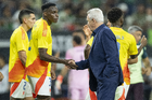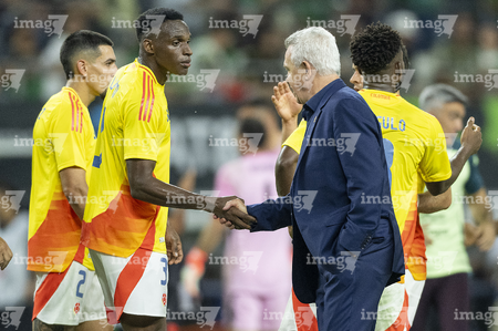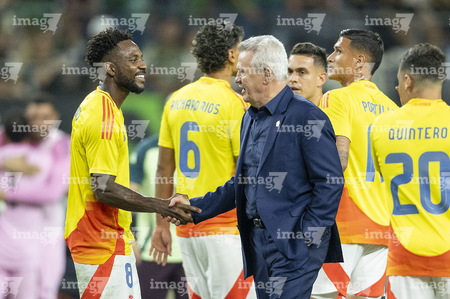 Arlington, Texas, Estados Unidos, 11 de octubre de 2025. Jhon Lucumí y Javier Aguirre, director técnico, durante un partido amistoso del MEXTOUR 2025, entre la Selección Nacional de México y la Selección de Colombia, celebrado en el AT&T Stadium. Foto: Imago7/ Etzel Espinosa