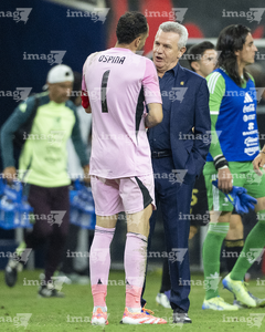 Arlington, Texas, Estados Unidos, 11 de octubre de 2025. David Ospina y Javier Aguirre, director técnico, durante un partido amistoso del MEXTOUR 2025, entre la Selección Nacional de México y la Selección de Colombia, celebrado en el AT&T Stadium. Foto: Imago7/ Etzel Espinosa