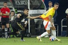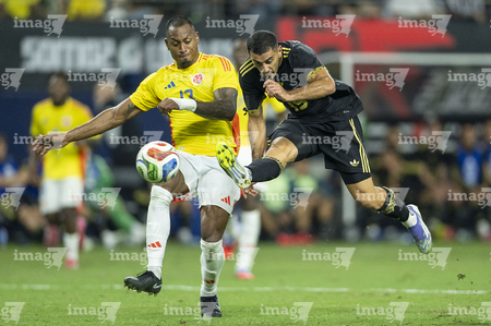 Arlington, Texas, Estados Unidos, 11 de octubre de 2025. Hirving Lozano "Chucky" y Álvaro Angulo, durante un partido amistoso del MEXTOUR 2025, entre la Selección Nacional de México y la Selección de Colombia, celebrado en el AT&T Stadium. Foto: Imago7/ Etzel Espinosa