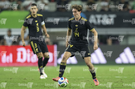 Arlington, Texas, Estados Unidos, 11 de octubre de 2025. Jesús Gallardo, durante un partido amistoso del MEXTOUR 2025, entre la Selección Nacional de México y la Selección de Colombia, celebrado en el AT&T Stadium. Foto: Imago7/ Etzel Espinosa