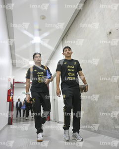 Zapopan, Jalisco, 14 de octubre de 2025. Alan Minda y Mateo Chávez, durante un partido amistoso del MEXTOUR 2025, entre la Selección Nacional de México y la Selección de Ecuador, realizado en el estadio Akron. Foto: Imago7/ Juan Carlos Cubeyro.