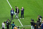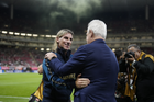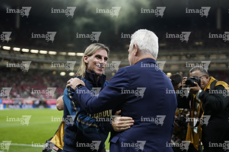 Zapopan, Jalisco, 14 de octubre de 2025. Sebastiánn Beccacece, director técnico y Javier Aguirre, director técnico, durante un partido amistoso del MEXTOUR 2025, entre la Selección Nacional de México y la Selección de Ecuador, realizado en el estadio Akron. Foto: Imago7/Sebastian Laureano Miranda
