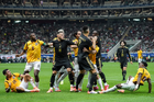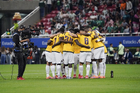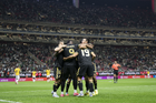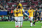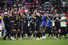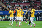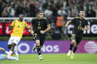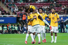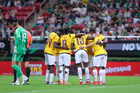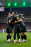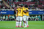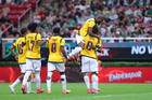 Zapopan, Jalisco, 14 de octubre de 2025. Jugadores de Ecuador en festejo de gol, durante un partido amistoso del MEXTOUR 2025, entre la Selección Nacional de México y la Selección de Ecuador, realizado en el estadio Akron. Foto: Imago7/ Hugo Ramirez