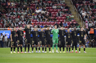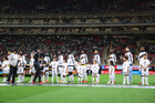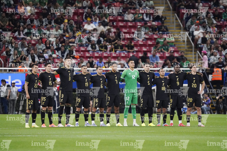 Zapopan, Jalisco, 14 de octubre de 2025. Jugadores de la Selección Nacional de México en minuto de silencio por los afectados por las inundaciones, durante un partido amistoso del MEXTOUR 2025, entre la Selección Nacional de México y la Selección de Ecuador, realizado en el estadio Akron. Foto: Imago7/