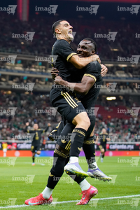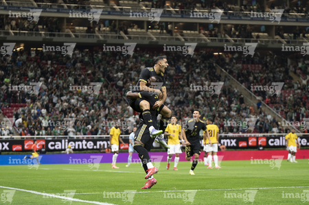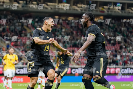 Zapopan, Jalisco, 14 de octubre de 2025. Germán Berterame y Julián Quiñones en festejo de gol, durante un partido amistoso del MEXTOUR 2025, entre la Selección Nacional de México y la Selección de Ecuador, realizado en el estadio Akron. Foto: Imago7/ Alejandro Lias