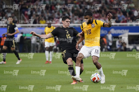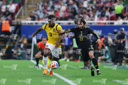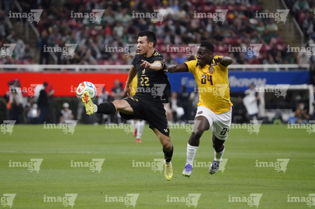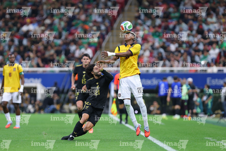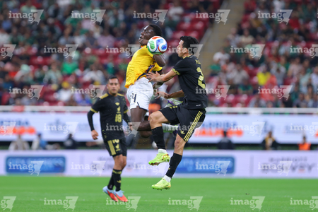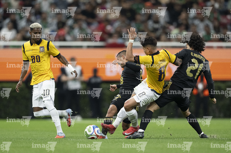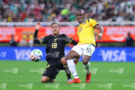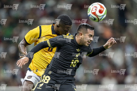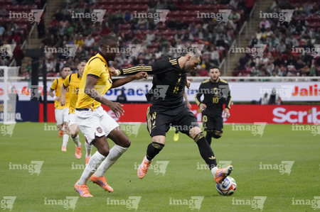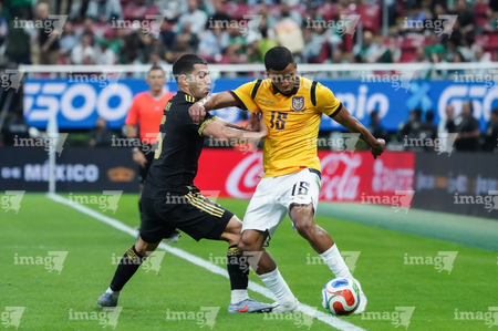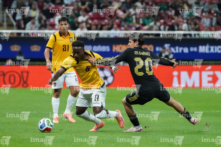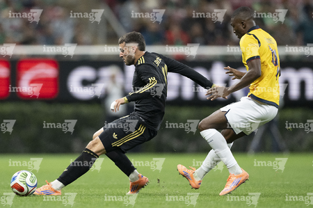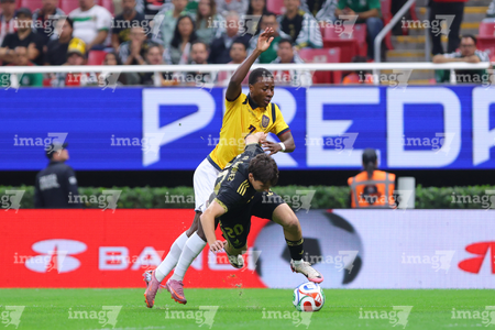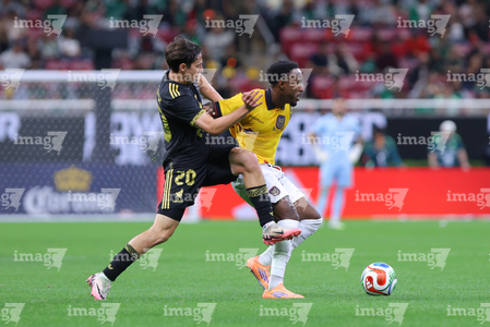 Zapopan, Jalisco, 14 de octubre de 2025. Erik Lira y Nilson Angulo, durante un partido amistoso del MEXTOUR 2025, entre la Selección Nacional de México y la Selección de Ecuador, realizado en el estadio Akron. Foto: Imago7/ Juan Carlos Cubeyro.