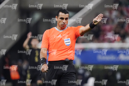 Zapopan, Jalisco, 14 de octubre de 2025. Juan Gabriel Calderón, árbitro central, durante un partido amistoso del MEXTOUR 2025, entre la Selección Nacional de México y la Selección de Ecuador, realizado en el estadio Akron. Foto: Imago7/Sebastian Laureano Miranda