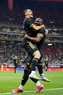 Zapopan, Jalisco, 14 de octubre de 2025. Julián Quiñones y Germán Berterame en festejo de gol, durante un partido amistoso del MEXTOUR 2025, entre la Selección Nacional de México y la Selección de Ecuador, realizado en el estadio Akron. Foto: Imago7/Andrés Sepúlveda