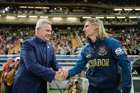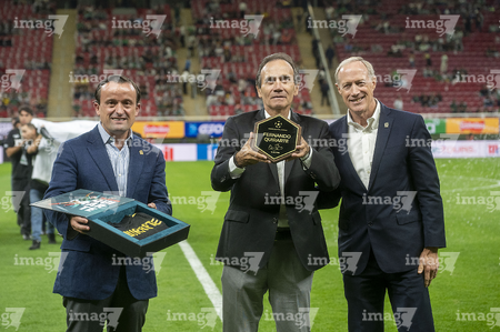 Zapopan, Jalisco, 14 de octubre de 2025. Mikel Arriola e Ivar Sisniega entregaron un reconocimiento a Fernando Quirarte, durante un partido amistoso del MEXTOUR 2025, entre la Selección Nacional de México y la Selección de Ecuador, realizado en el estadio Akron. Foto: Imago7/Andrés Sepúlveda