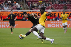 Zapopan, Jalisco, 14 de octubre de 2025. John Yeboah en lamento, durante un partido amistoso del MEXTOUR 2025, entre la Selección Nacional de México y la Selección de Ecuador, realizado en el estadio Akron. Foto: Imago7/