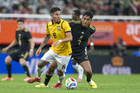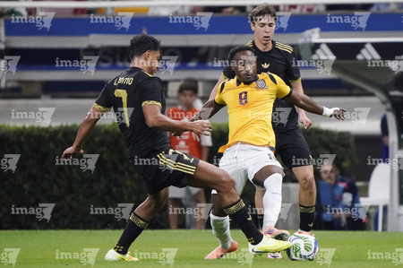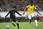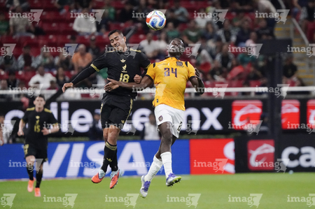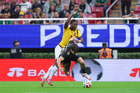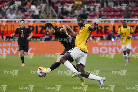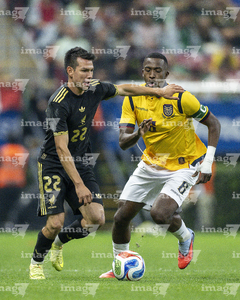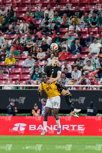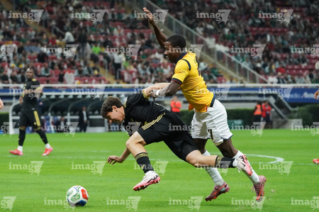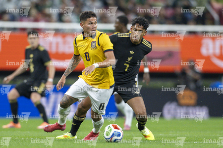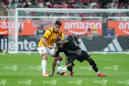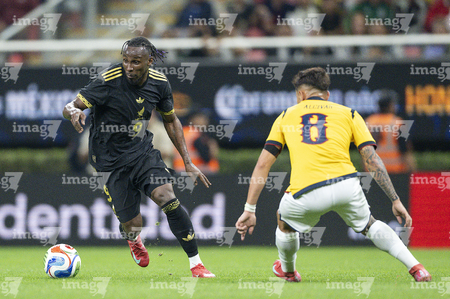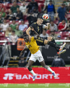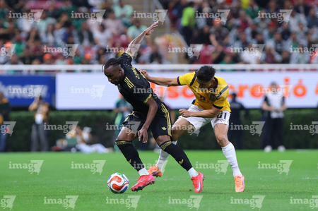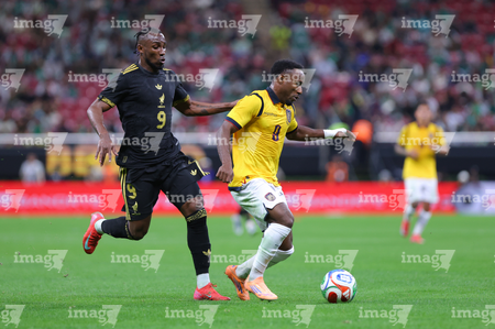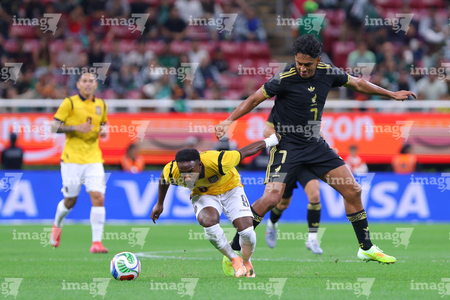 Zapopan, Jalisco, 14 de octubre de 2025. John Yeboah y Mateo Chávez, durante un partido amistoso del MEXTOUR 2025, entre la Selección Nacional de México y la Selección de Ecuador, realizado en el estadio Akron. Foto: Imago7/