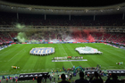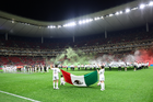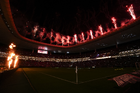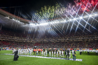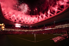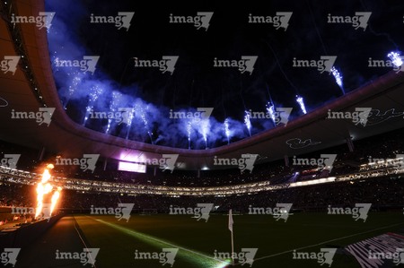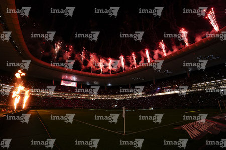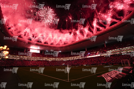 Zapopan, Jalisco, 14 de octubre de 2025. Fuegos artificiales, durante un partido amistoso del MEXTOUR 2025, entre la Selección Nacional de México y la Selección de Ecuador, realizado en el estadio Akron. Foto: Imago7/Sebastian Laureano Miranda