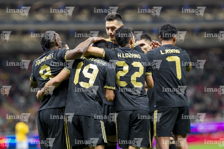 Zapopan, Jalisco, 14 de octubre de 2025. Jugadores de la Selección Nacional de México en festejo de gol, durante un partido amistoso del MEXTOUR 2025, entre la Selección Nacional de México y la Selección de Ecuador, realizado en el estadio Akron. Foto: Imago7/ Alejandro Lias