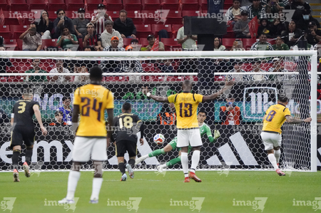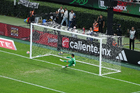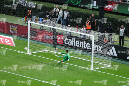 Zapopan, Jalisco, 14 de octubre de 2025. Jordy Alcívar anota gol de penal a Raúl Rangel, durante un partido amistoso del MEXTOUR 2025, entre la Selección Nacional de México y la Selección de Ecuador, realizado en el estadio Akron. Foto: Imago7/Sebastian Laureano Miranda
