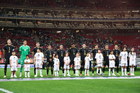 Zapopan, Jalisco, 14 de octubre de 2025. Jugadores de la Selección Nacional de México entonan el himno nacional mexicano, durante un partido amistoso del MEXTOUR 2025, entre la Selección Nacional de México y la Selección de Ecuador, realizado en el estadio Akron. Foto: Imago7/ Juan Carlos Cubeyro.
