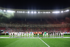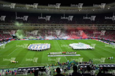 Zapopan, Jalisco, 14 de octubre de 2025. entonan el himno nacional mexicano, durante un partido amistoso del MEXTOUR 2025, entre la Selección Nacional de México y la Selección de Ecuador, realizado en el estadio Akron. Foto: Imago7/ Juan Carlos Cubeyro.
