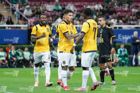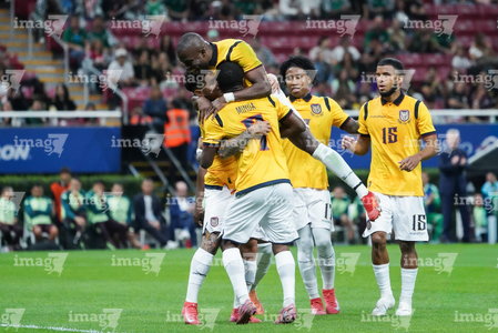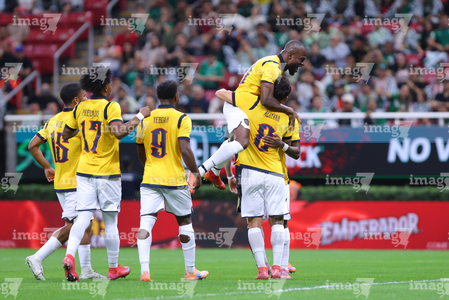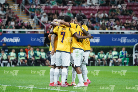 Zapopan, Jalisco, 14 de octubre de 2025. Jugadores de Ecuador en festejo de gol, durante un partido amistoso del MEXTOUR 2025, entre la Selección Nacional de México y la Selección de Ecuador, realizado en el estadio Akron. Foto: Imago7/ Juan Carlos Cubeyro.