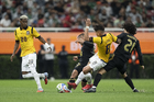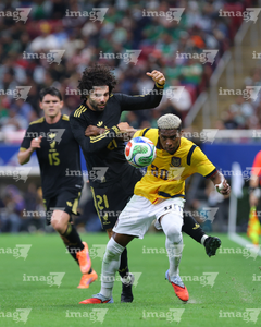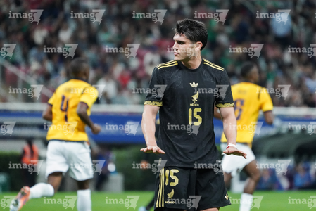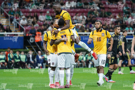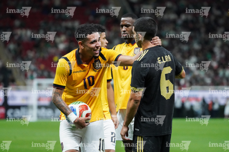 Zapopan, Jalisco, 14 de octubre de 2025. Kendry Páez en reclamo, durante un partido amistoso del MEXTOUR 2025, entre la Selección Nacional de México y la Selección de Ecuador, realizado en el estadio Akron. Foto: Imago7/