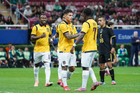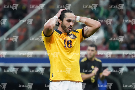 Zapopan, Jalisco, 14 de octubre de 2025. Leonardo Campana en lamento, durante un partido amistoso del MEXTOUR 2025, entre la Selección Nacional de México y la Selección de Ecuador, realizado en el estadio Akron. Foto: Imago7/ Hugo Ramirez