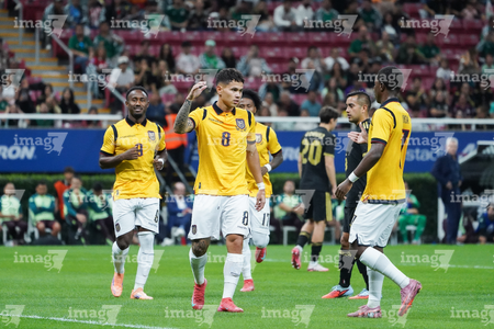 Zapopan, Jalisco, 14 de octubre de 2025. Jordy Alcívar en festejo de gol, durante un partido amistoso del MEXTOUR 2025, entre la Selección Nacional de México y la Selección de Ecuador, realizado en el estadio Akron. Foto: Imago7/