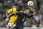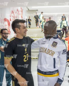 Zapopan, Jalisco, 14 de octubre de 2025. Germán Berterame y William Pacho, durante un partido amistoso del MEXTOUR 2025, entre la Selección Nacional de México y la Selección de Ecuador, realizado en el estadio Akron. Foto: Imago7/Sebastian Laureano Miranda