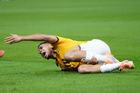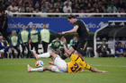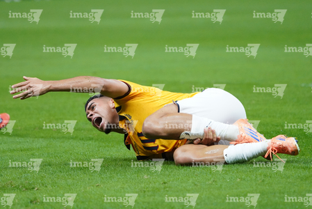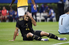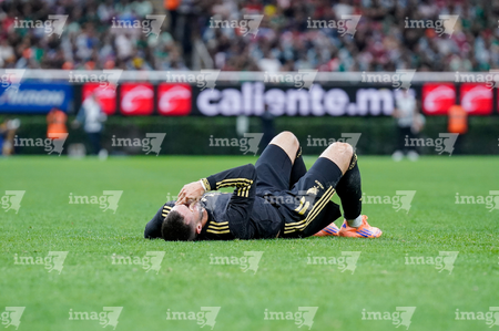 Zapopan, Jalisco, 14 de octubre de 2025. Erik Lira resultó lesionado, durante un partido amistoso del MEXTOUR 2025, entre la Selección Nacional de México y la Selección de Ecuador, realizado en el estadio Akron. Foto: Imago7/ Juan Carlos Cubeyro.