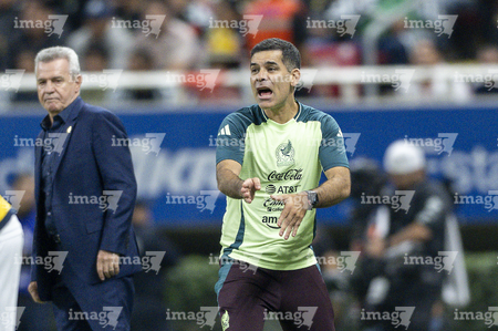 Zapopan, Jalisco, 14 de octubre de 2025. Javier Aguirre, director técnico y Rafael Márquez, auxiliar técnico, durante un partido amistoso del MEXTOUR 2025, entre la Selección Nacional de México y la Selección de Ecuador, realizado en el estadio Akron. Foto: Imago7/Etzel Espinosa