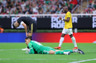 Zapopan, Jalisco, 14 de octubre de 2025. Mateo Chávez en lamento, durante un partido amistoso del MEXTOUR 2025, entre la Selección Nacional de México y la Selección de Ecuador, realizado en el estadio Akron. Foto: Imago7/ Alejandro Lias