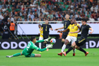 Zapopan, Jalisco, 14 de octubre de 2025. Raúl Rangel comete penal a Enner Valencia, durante un partido amistoso del MEXTOUR 2025, entre la Selección Nacional de México y la Selección de Ecuador, realizado en el estadio Akron. Foto: Imago7/Etzel Espinosa