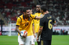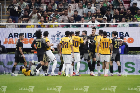 Zapopan, Jalisco, 14 de octubre de 2025. Johan Vásquez en conato de bronca, durante un partido amistoso del MEXTOUR 2025, entre la Selección Nacional de México y la Selección de Ecuador, realizado en el estadio Akron. Foto: Imago7/ Hugo Ramirez