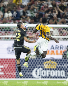 Zapopan, Jalisco, 14 de octubre de 2025. John Yeboah y Luis Romo, durante un partido amistoso del MEXTOUR 2025, entre la Selección Nacional de México y la Selección de Ecuador, realizado en el estadio Akron. Foto: Imago7/ Juan Carlos Cubeyro.
