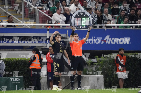Zapopan, Jalisco, 14 de octubre de 2025. Alexis Gutiérrez entra de cambio por Erick Sánchez, durante un partido amistoso del MEXTOUR 2025, entre la Selección Nacional de México y la Selección de Ecuador, realizado en el estadio Akron. Foto: Imago7/Sebastian Laureano Miranda