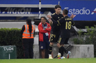 Zapopan, Jalisco, 14 de octubre de 2025. Germán Berterame anota gol, durante un partido amistoso del MEXTOUR 2025, entre la Selección Nacional de México y la Selección de Ecuador, realizado en el estadio Akron. Foto: Imago7/
