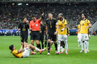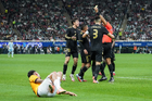 Zapopan, Jalisco, 14 de octubre de 2025. Jugadores de la Selección Nacional de México y Jugadores de Ecuador en conato de bronca, durante un partido amistoso del MEXTOUR 2025, entre la Selección Nacional de México y la Selección de Ecuador, realizado en el estadio Akron. Foto: Imago7/