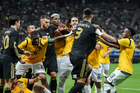 Zapopan, Jalisco, 14 de octubre de 2025. Jugadores de la Selección Nacional de México y Jugadores de Ecuador en conato de bronca, durante un partido amistoso del MEXTOUR 2025, entre la Selección Nacional de México y la Selección de Ecuador, realizado en el estadio Akron. Foto: Imago7/Sebastian Laureano Miranda