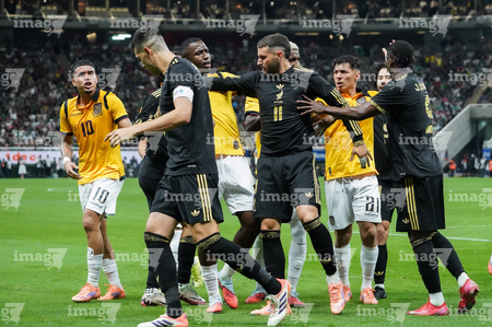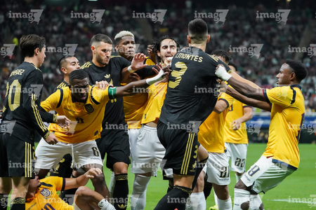 Zapopan, Jalisco, 14 de octubre de 2025. Jugadores de la Selección Nacional de México y Jugadores de Ecuador en conato de bronca, durante un partido amistoso del MEXTOUR 2025, entre la Selección Nacional de México y la Selección de Ecuador, realizado en el estadio Akron. Foto: Imago7/ Juan Carlos Cubeyro.