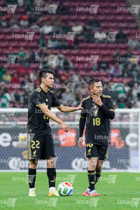 Zapopan, Jalisco, 14 de octubre de 2025. Ramón Juárez y Alexis Gutiérrez, durante un partido amistoso del MEXTOUR 2025, entre la Selección Nacional de México y la Selección de Ecuador, realizado en el estadio Akron. Foto: Imago7/Etzel Espinosa