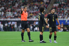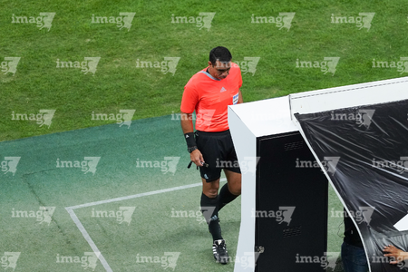 Zapopan, Jalisco, 14 de octubre de 2025. Juan Gabriel Calderón, árbitro central consulta el sistema de video asistente del árbitro VAR, durante un partido amistoso del MEXTOUR 2025, entre la Selección Nacional de México y la Selección de Ecuador, realizado en el estadio Akron. Foto: Imago7/Andrés Sepúlveda