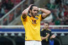 Zapopan, Jalisco, 14 de octubre de 2025. Germán Berterame en lamento, durante un partido amistoso del MEXTOUR 2025, entre la Selección Nacional de México y la Selección de Ecuador, realizado en el estadio Akron. Foto: Imago7/Sebastian Laureano Miranda