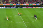 Zapopan, Jalisco, 14 de octubre de 2025. Protocolo, durante un partido amistoso del MEXTOUR 2025, entre la Selección Nacional de México y la Selección de Ecuador, realizado en el estadio Akron. Foto: Imago7/Andrés Sepúlveda
