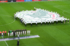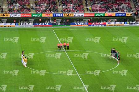 Zapopan, Jalisco, 14 de octubre de 2025. Jugadores de Ecuador y Jugadores de la Selección Nacional de México en minuto de silencio por los afectados por las inundaciones, durante un partido amistoso del MEXTOUR 2025, entre la Selección Nacional de México y la Selección de Ecuador, realizado en el estadio Akron. Foto: Imago7/Andrés Sepúlveda