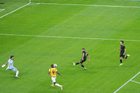 Zapopan, Jalisco, 14 de octubre de 2025. Germán Berterame anota gol, durante un partido amistoso del MEXTOUR 2025, entre la Selección Nacional de México y la Selección de Ecuador, realizado en el estadio Akron. Foto: Imago7/Andrés Sepúlveda